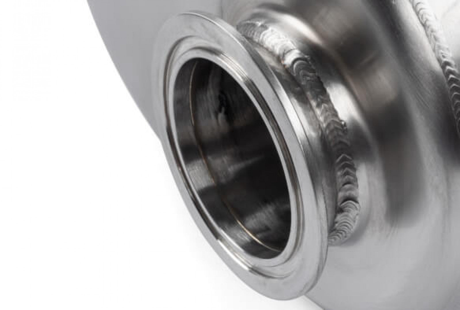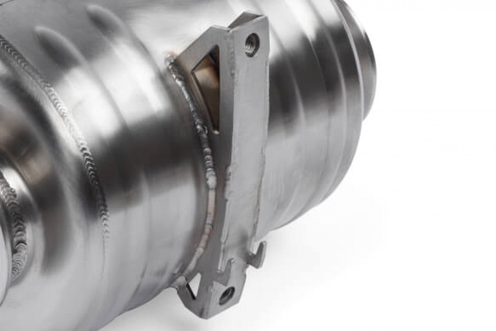 This optional muffler can be used with our 718 982 2.0T / 2.5T exhaust system to quiet the exhaust note. Simply swap out our catback's straightpipe and put this in its place. V-bands and precision clamps make removal and mounting a snap. The system is created from T304 stainless steel with a brushed finish and TIG welding throughout. The muffler is a straight through sound absorption design.