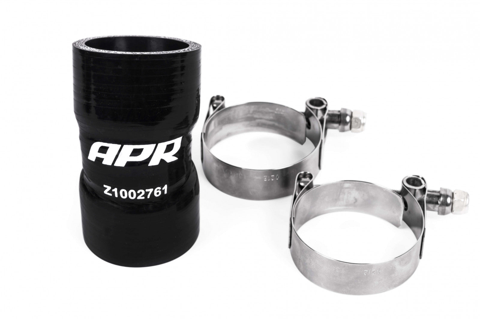 APR is pleased to present the ultimate boost hose upgrade for MQB platform vehicles with the 1.8T and 2.0T engines!, , The APR Boost Hose System is a comprehensive, direct replacement upgrade, to the factory rubber hoses found in the charge piping system. The system includes a multitude of enhancements designed for maximum performance, longevity and insurance against power robbing boost leaks. The system is sold both as a complete kit, and individually, and is fully compatible with the OEM and upgraded APR Intercooler system, OEM throttle body and all OEM turbochargers., , This system includes the turbo outlet hose., , APR's Engineers took a multi-step approach to optimizing the hoses to minimize boost leaks, reduce turbulence and other performance degradations. Four-ply silicone was utilized as it provides the thickness and strength characteristics necessary to support boost levels far beyond the engine's capabilities. A Fluorosilicone internal lining was added to ensure the hoses do not rapidly deteriorate over time when exposed to oil and gasoline from the PCV and EVAP systems. The included stainless-steel Clampco T-bolt clamps prevent the hoses from coming loose under heavy pressure and under high temperatures, silicone adheres to its mating surface, further minimizing leaks and hose slippage. APR's EZ-Flow stepped design creates a smooth airflow path, reducing turbulence over non-stepped designs. Finally, silicone provides better heat resistance over rubber, extending the life of the product and ultimately minimizing failure. The result is hose solution that directly replaces the factory rubber hoses and maintains performance under extreme conditions!
