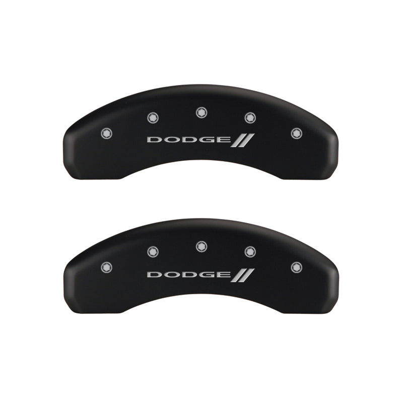 MGP 4 Caliper Covers Engraved Front & Rear With stripes/Dodge Red finish silver ch