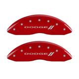 MGP 4 Caliper Covers Engraved Front & Rear With stripes/Dodge Red finish silver ch
