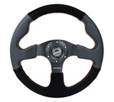 NRG Reinforced Steering Wheel (320mm/ 2.5in. Deep) Sport Leather / Suede w/ Red Stitch