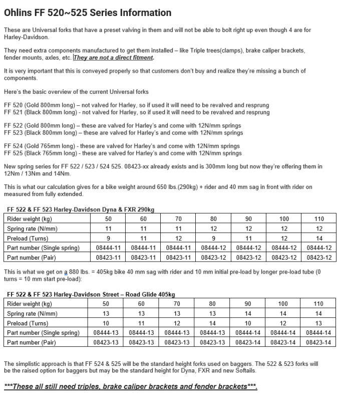 Ohlins Harley-Davidson Custom 43 USD Gold Fork *See Tech Notes*